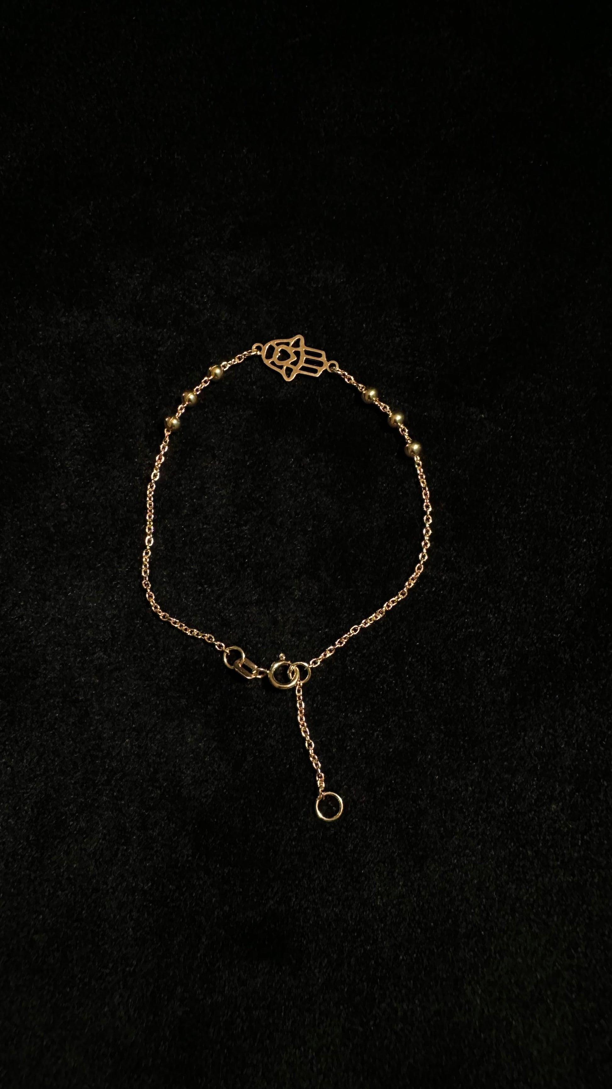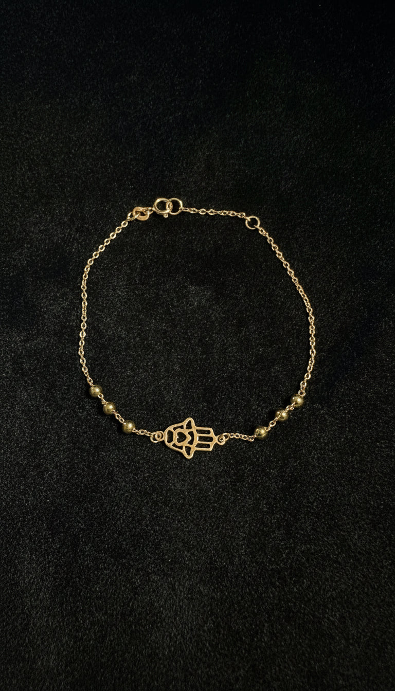 La Fátima Guardian es una pulsera de oro de 18 quilates, diseñada para unir estilo, significado y protección en una pieza fina y elegante. Su delicado dije de Mano de Fátima, símbolo universal de resguardo y buena fortuna, se acompaña de 6 valines lisos que equilibran el diseño y aportan un brillo sutil a lo largo de la pulsera.