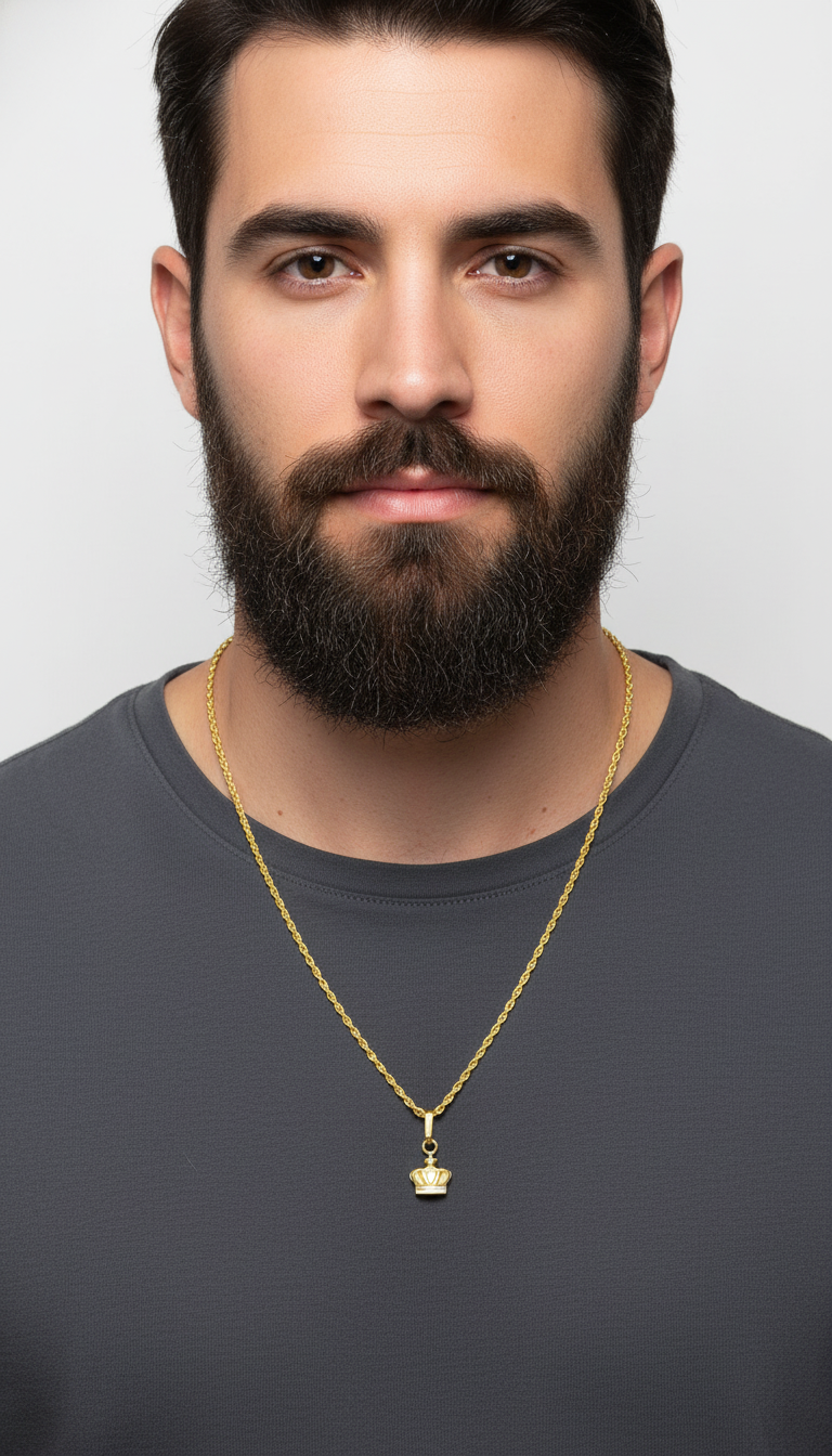 Cada diseño combina brillo, sofisticación y fuerza, haciendo que la corona refleje la luz de manera impecable y otorgue un toque de lujo y realeza a quien lo porta. Este collar es ideal para uso diario o ocasiones especiales, resaltando tu estilo con elegancia y presencia.