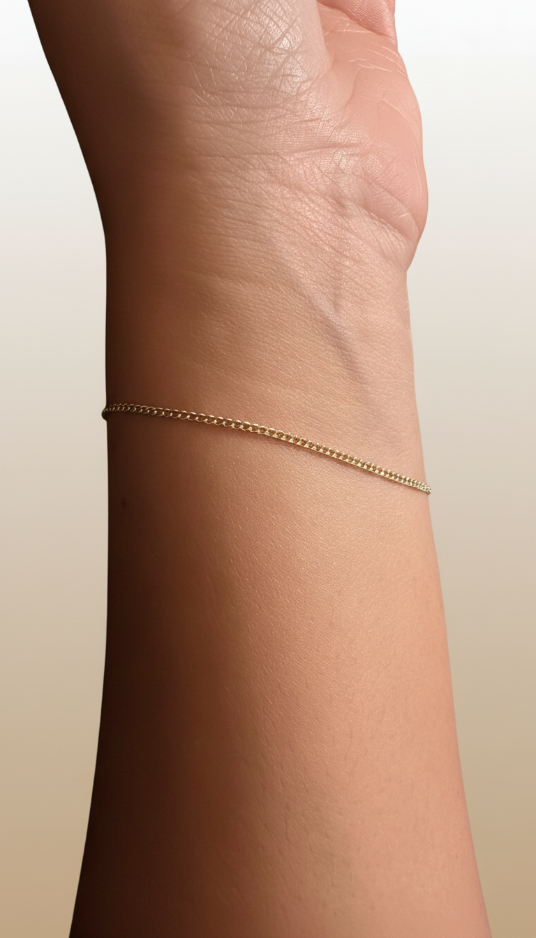 La Cubana Prime es una pulsera unisex de oro 18 quilates, con una longitud de 19 cm y un peso total de 0.80 gramos. Su diseño estilo cubano aporta textura, resistencia y brillo, haciendo que cada ángulo refleje la luz de manera impecable.