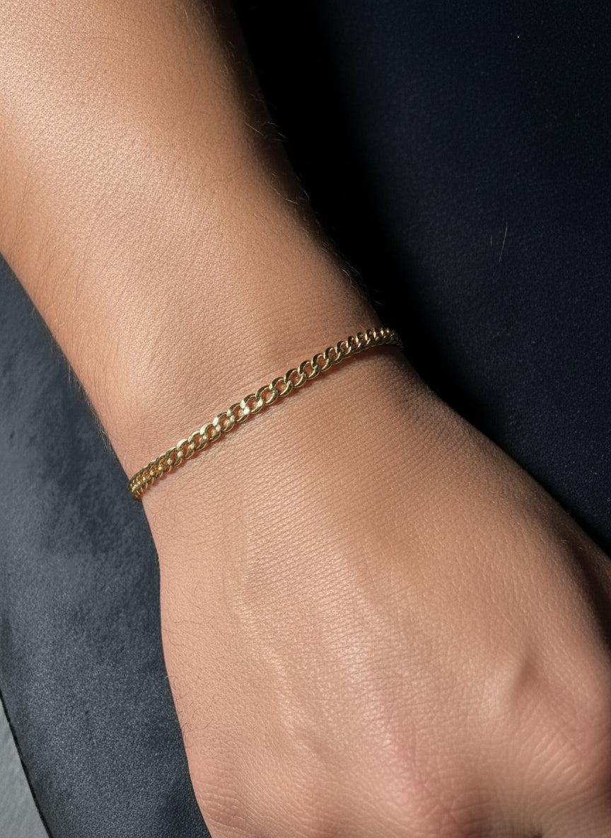 La Cubana Prime es una pulsera unisex de oro 18 quilates, con una longitud de 19 cm y un peso total desde 0.80 gramos. Su diseño estilo cubano aporta textura, resistencia y brillo, haciendo que cada ángulo refleje la luz de manera impecable.